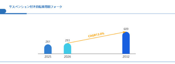 都市での通勤需要や快適な市街地移動への関心が高まり、振動吸収や乗り心地を重視するユーザー層が増えています。その結果、通勤・グラベル用途を想定したサスペンション付き自転車用前フォークの需要が拡大しています。