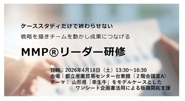「商品、販売、販促、技術」の基礎知識の上に立ち体系化した経営戦略、ビジネスプラン、研究開発、販路開拓、商品開発等の事業における実践としての場がマネジメントマーケティングの「MM会議(MMC)」です。MMCを研修プログラム化したものが「MMP」であり、従来あるケースメソッドとは異なり、今現在、問題解決を図らなければならない課題を解決することが、MMPの本質です。