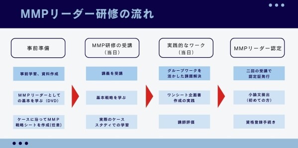 また、MMPリーダーになると、MMPワンシート企画書やMMP戦略シートA・Bなど、自分の持つMMPグループ各資格のMMPツールを活用してMMP研修を実施できます。
