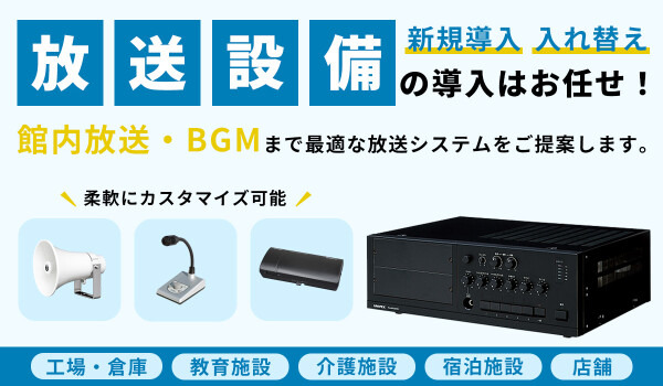 防犯カメラの設置をご相談いただく際、工場・教育施設・店舗などのお客様から「館内放送(音響)の調子が悪い」「BGMや呼び出しの運用を見直したい」といったお声をいただくことが増えてきました。