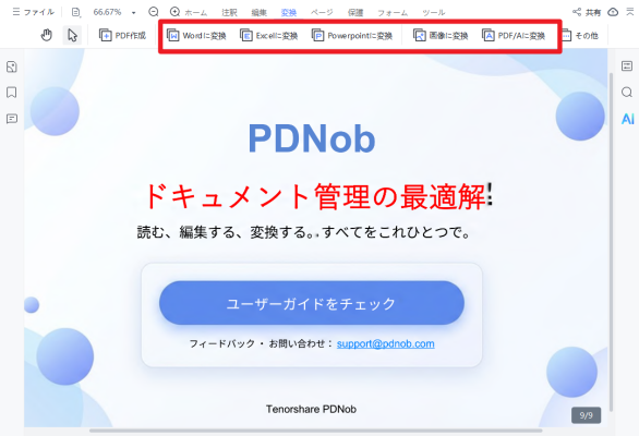編集が完了した資料は、PDFとしてそのまま共有するだけでなく、PowerPointやWordなどの形式に書き出すことも可能です。