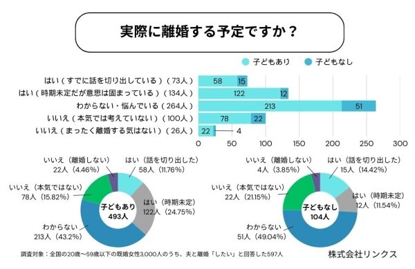 離婚希望者に「実際に離婚する予定はあるか」を聞いた結果: