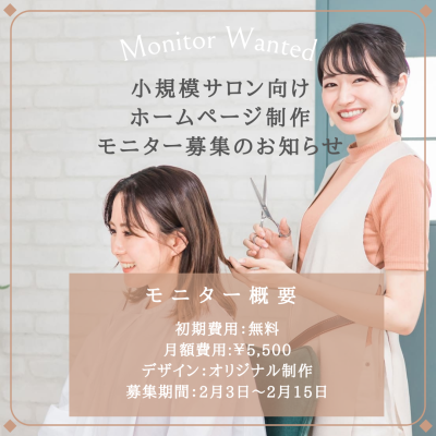 そこで今回、実際のサロン様の制作を通して、より使いやすいテンプレートを開発するためのモニター企画を実施することとなりました。