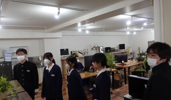当社初となる今回の企業訪問学習では、代表取締役の野口と社員1名で中学生5人を迎えました。