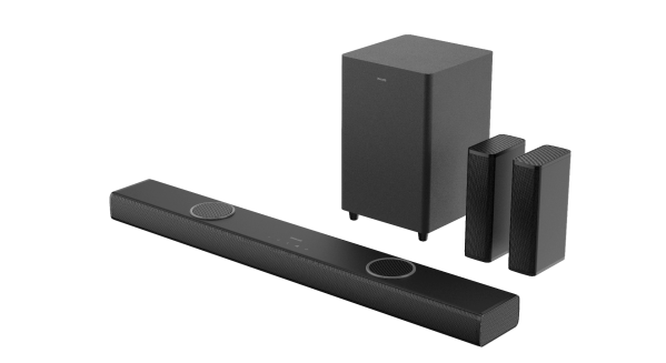 PHILIPS初の物理スピーカーによる7.1.4ch対応サウンドバー。煩わしい設定は不要で電源を繋げるだけでスピーカー同士が自動でペアリング。