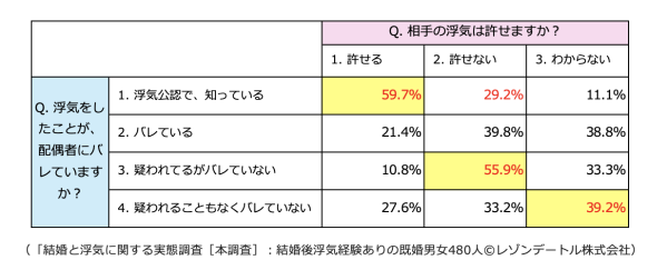 すると‥ それぞれの配偶者バレの実態別で、大きな違いがみられました。