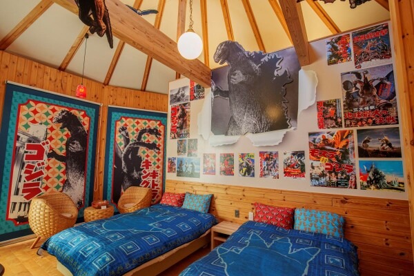 「GRAND CHARIOT 北斗七星135°」の一棟を、日本を代表する特撮映画「ゴジラ」をテーマに装飾。“昭和レトロ”をモチーフに、同作品の世界観と昭和時代が再現された空間を存分に楽しむことができる