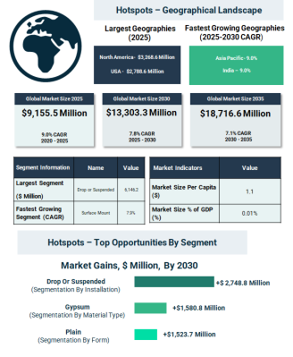 2030年までに、天井タイル市場における最大の機会は以下から生まれると予測される:
