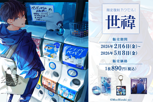フィジカルグッズのオンラインくじ「カワセルくじ」にて、大好評を博しながらも期間限定での販売を終了した人気イラストレーター「世禕」のくじが、ファンの声を受けて、2回目の【復刻再販】を開始しました。