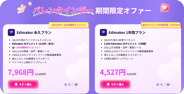 バレンタインの特別な思い出作りを応援するため、「HitPaw Edimakor」では期間限定の割引キャンペーンを実施中です。