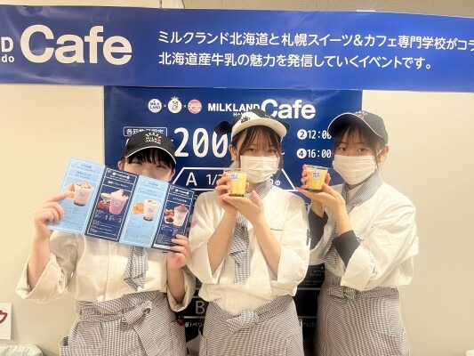 札幌スイーツ&カフェ専門学校は2026年1月21日(水)~1月25日(日)、北海道牛乳普及協会・ホクレン農業協同組合連合会が主催する「ミルク&ナチュラルチーズフェア2026」札幌会場において、札幌スイーツ&カフェ専門学校の学生がイベントに向けて開発したオリジナルドリンクを「MILK LAND Hokkaido CAFÉ」で販売しました。