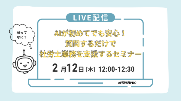 タイトル:AIが初めてでも安心!質問するだけで社労士業務を支援するセミナー| 2/12(木)開催