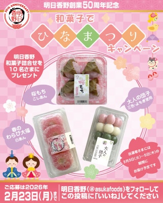 このたび、桜もちを含む春を感じられる和菓子のセットがもらえるキャンペーン「和菓子でひなまつりキャンペーン」を開始しました。キャンペーンの開催期間は2026年2月9日から2月23日までとなります。