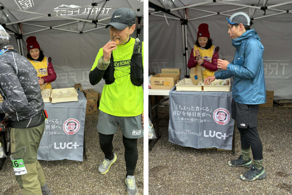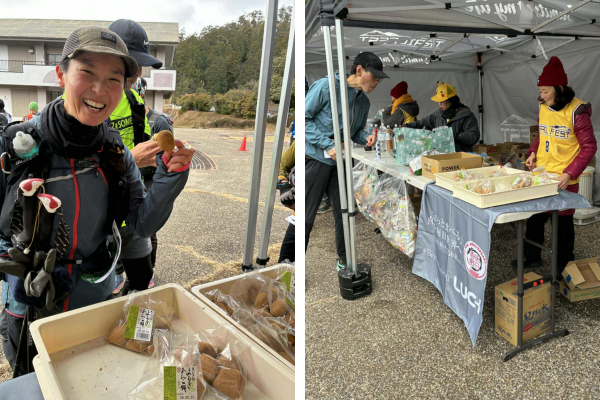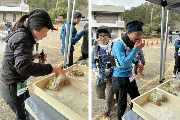 明日香野は本大会において、CP2・宮奥ダムエイドにて、「黒糖わらび」「きな粉よもぎあんこ餅」計102パックをお届けしました。次のエイドまで15kmほど離れた区間での和菓子提供となり、エネルギー補給を意識して、しっかりと味わっていく選手の姿が多く見られました。用意した和菓子は1周目で全てなくなるほどの人気となり、寒い季節のレースを支える「ちょっと食べる喜び」をお届けすることができました。