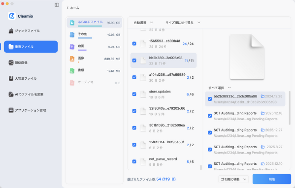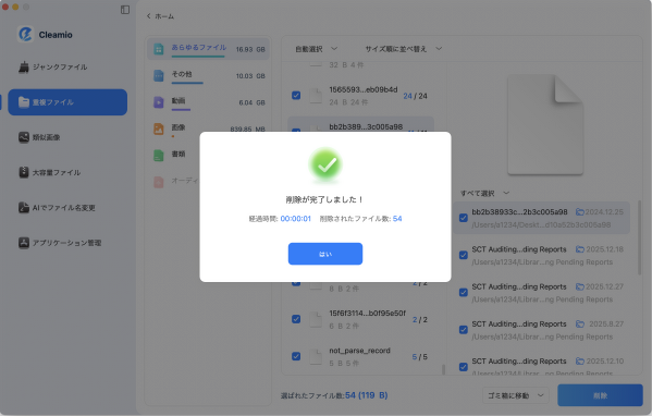 より安全かつ効率的に整理したい場合は、Mac向けの重複ファイル削除アプリを使う方法がおすすめです。専用アプリを使えば、