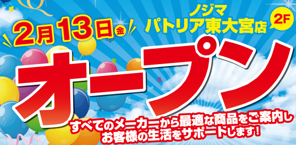 また、2月13日(金)~3月6日(金)の期間中、オープン限定特価としてノジマポイントが最大20%還元になるお得なセールも開催いたします。皆さまのご来店をお待ちしております!