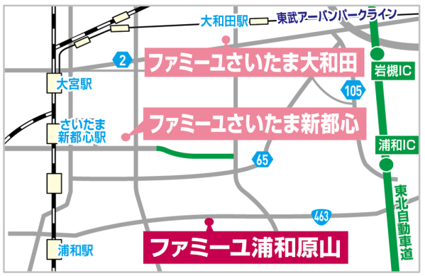 (地図)さいたま市内には3店舗のファミーユホールを展開