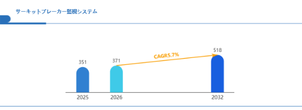Global Reports調査チームの最新レポート「グローバルサーキットブレーカー監視システム市場規模、主要企業シェア、ランキング分析レポート【2026年版】」によると、2026年の371百万米ドルから2032年には518百万米ドルに成長し、2026年から2032年の間にCAGRは5.7%になると予測されています。