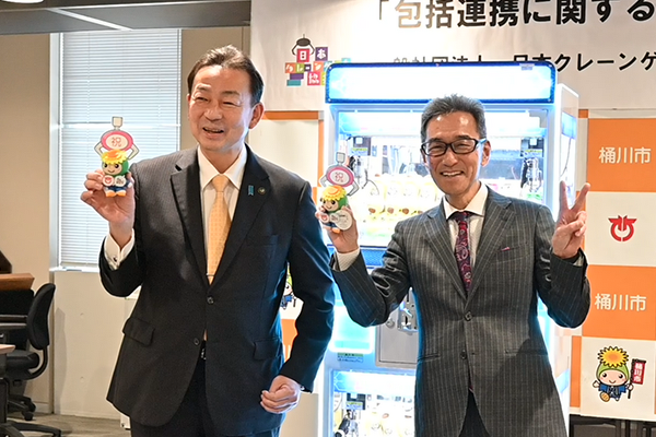 体験では、桶川市のマスコットキャラクター「オケちゃん」を景品として獲得し、今回の締結を記念する品として贈呈いただきました。クレーンゲームを通じて、会場には自然な笑顔と和やかな交流が広がりました。