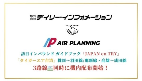 株式会社AIR PLANNING(本社:東京都千代田区平河町1-3-6 BIZMARKS麹町2F)は、台湾最大手LCC・タイガーエア台湾の機内媒体販売代理店として、株式会社デイリー・インフォメーションが発行する訪日観光ガイドブック『JAPAN en TRY』の機内配布を、2026年2月13日より開始いたしました。