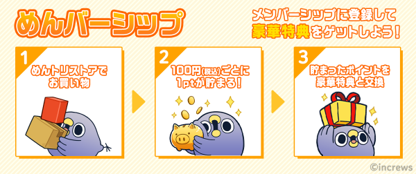 お買い物がもっと楽しくなる、めんトリストアのメンバーシップ!