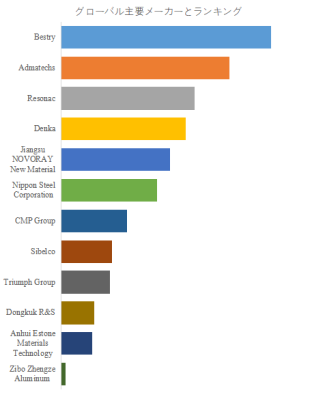 LP Informationのトップ企業研究センターによると、球状の酸化アルミニウムの世界的な主要製造業者には、Bestry、Admatechs、Resonac、Denka、Jiangsu NOVORAY New Material、Nippon Steel Corporation、Sibelco、CMP Group、Triumph Group、Dongkuk R&Sなどが含まれている。2024年、世界のトップ10企業は売上の観点から約82.0%の市場シェアを持っていた。