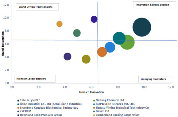 世界スクラロース市場は比較的分散しており、2024年には上位10社で世界シェアの16%弱を占めた。主要企業には以下が含まれる: