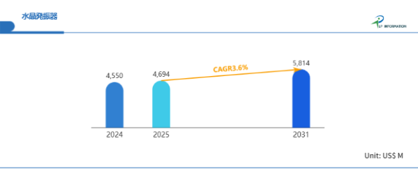 LP Informationの調査レポート「世界水晶発振器市場の成長予測2026~2032」(https://www.lpinformation.jp/reports/582545/quartz-oscillators)によれば、2025年から2031年の世界市場の年平均成長率(CAGR)は3.6%とされ、2031年には市場規模が58.14億米ドルに達する見通しである。これは、高速通信インフラや車載電装化が進展する中、1ppm(parts per million)単位の精度制御が製品品質を左右するフェーズに入っていることを意味する。