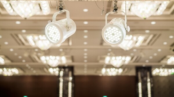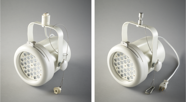 SL1Mk-IIは、天井高3~4mの会場に最適なハロゲン250W相当のあかりを消費電力34W(ハロゲンランプの約1/8)の省エネ設計で実現しつつ、3種類のレンズラインナップ(ナロー13/ミディアム20/ワイド30°)を備えたコンパクトなモデルです。