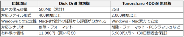 Disk Drill vs Tenorshare 4DDiG 無料版――何が違うのか