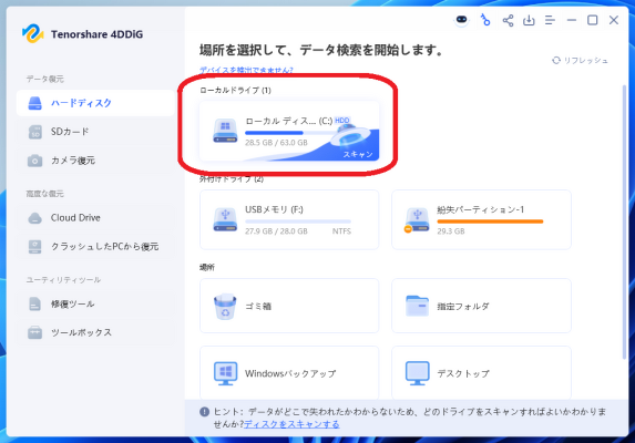 Tenorshare 4DDiGはデータ復旧の専門家です。WindowsとMacに対応しており、様々な状況で失われたデータを復元することができます。