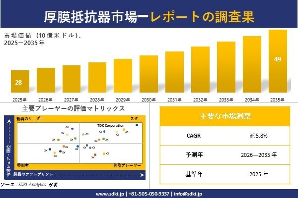 厚膜抵抗器に関する詳細な市場調査報告書は以下のリンクから入手できます: https://www.sdki.jp/reports/thick-film-resistor-market/106711