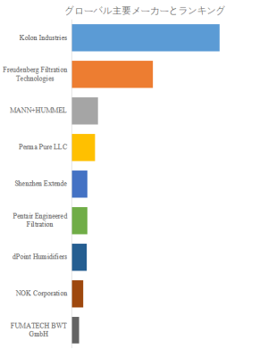 LP Informationのトップ企業研究センターによると、燃料電池用加湿膜モジュールの世界的な主要製造業者には、Kolon Industries、Freudenberg Filtration Technologies、MANN+HUMMELなどが含まれている。2024年、世界のトップ3企業は売上の観点から約67.0%の市場シェアを持っていた。