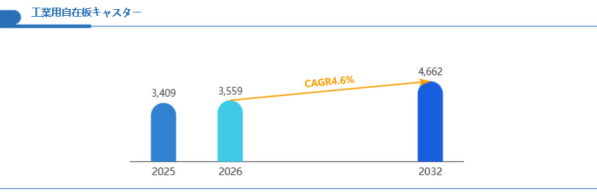 Global Reportsの最新レポート「グローバル工業用自在板キャスター市場規模、主要企業シェア、ランキング分析レポート【2026年版】」(YH Research)によると、工世界の工業用自在板キャスター市場規模は2025年の34億900万米ドルから2032年には46億6,200万米ドルへ拡大し、2026~2032年の年平均成長率(CAGR)は4.6%に達する見通しである。本分析では、産業機器向けキャスター、重荷重キャスター、医療機器キャスターといった主要セグメントを軸に、市場規模、地域構造、競争環境、ならびに2025年米国関税政策再編がもたらす産業連鎖への影響を多角的に検証する。