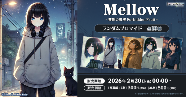 YouTube登録者130万人超えのボカロアーティスト「Mellow-禁断の果実Forbidden Fruit-」のコンテンツプリントが、日本全国のコンビニエンスストアを中心とした約60,000店舗のマルチコピー機で一斉に販売開始!