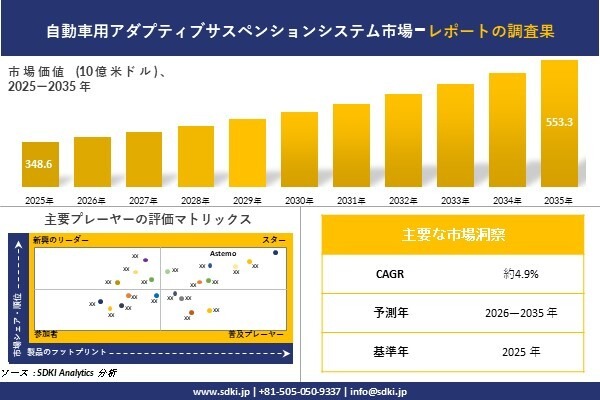 経営層の意思決定に役立つ戦略的洞察を得るため、自動車用アダプティブサスペンションシステム市場調査レポートの試読版をご請求ください: https://www.sdki.jp/trial-reading-request-115062