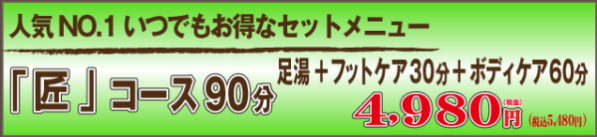 「~いつでもお得なセットメニュー匠コース90分~」のご案内しております