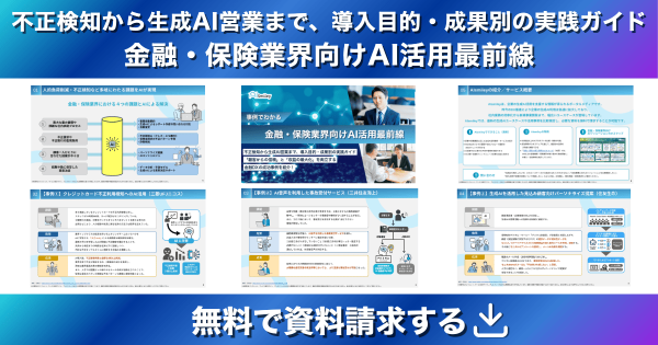 本資料では、専門チームのノウハウを学習させたAIによるクレジットカード不正検知や、災害時でも迅速な対応を可能にするAI音声ボットを用いた事故受付、さらには生成AIを活用した顧客ごとのパーソナライズ営業など、現場の課題解決に直結する実践的なユースケースを紹介しています。