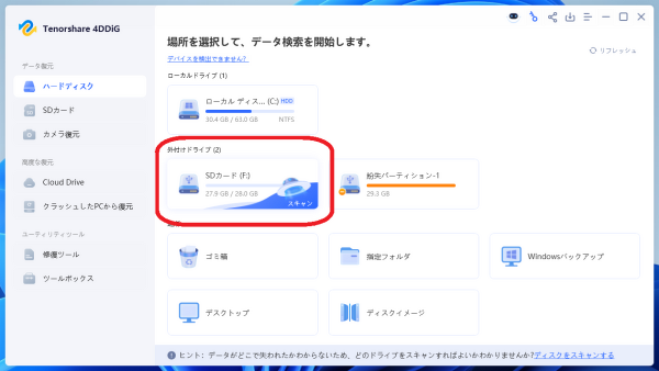 Tenorshare 4DDiG 無料版でフォーマット後のSDカードを復元する手順