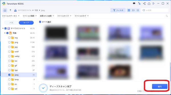 Tenorshare 4DDiG 無料版が際立つのは、スキャンとプレビューが容量無制限で使える点です。実際の復元は2GBまで無料。JPEG 写真換算で約400~500枚分に相当するため、旅行や記念行事の写真であれば無料版のみで完結できるケースが多いです。
