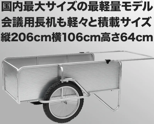 リヤカー専門店リヤカーの森のアルミ製大型モデルは、これらの欠点を解消し、「軽い・強い・たくさん載る・導入しやすい」というバランスを実現しています。