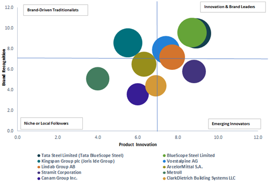 タタ・スチール・リミテッド(タタ・ブルースコープ・スチール)が2.85%で最大シェアを持ち、ブルースコープ・スチール・リミテッド(2.71%)、キングスパン・グループ(ヨリス・イデ・グループ)(2.65%)、フェストアルピーネ・エーゲー(2.39%)などが続いています。