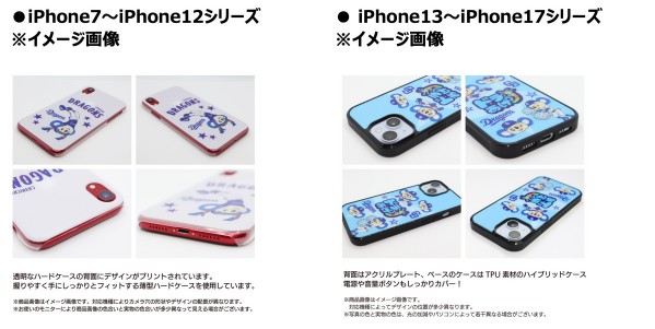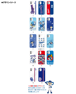 球団ロゴやドアラなどのマスコットキャラクターがデザインされたかわいいケースが
