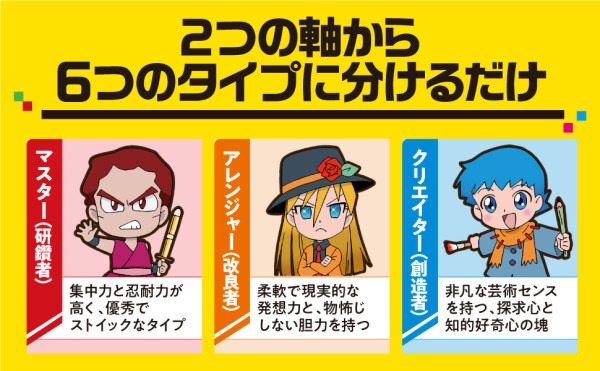 この2つの軸から以下の6つのタイプがわかります。