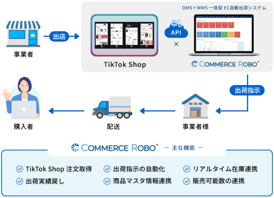 コマースロボは、API連携による受注~出荷までの完全自動化を実現。