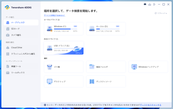 「フォーマットしてください」というエラーが出たUSBメモリからデータを救出するなら、「4DDiG 無料版」が最適です。