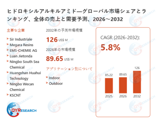 QY Research株式会社(東京都中央区)は、「ヒドロキシルアルキルアミド―グローバル市場シェアとランキング、全体の売上と需要予測、2026~2032」の最新レポートを発表しました。