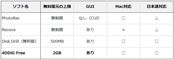 ・無料で2GBまで復元できる(Disk Drillの4倍以上)
