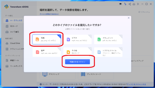 Tenorshare 4DDiGはデータ復旧の専門家です。WindowsとMacに対応しており、様々な状況で失われたデータを復元することができます。