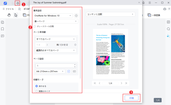 編集後のPDFを保存し、印刷設定を確認してプリンターから印刷します。